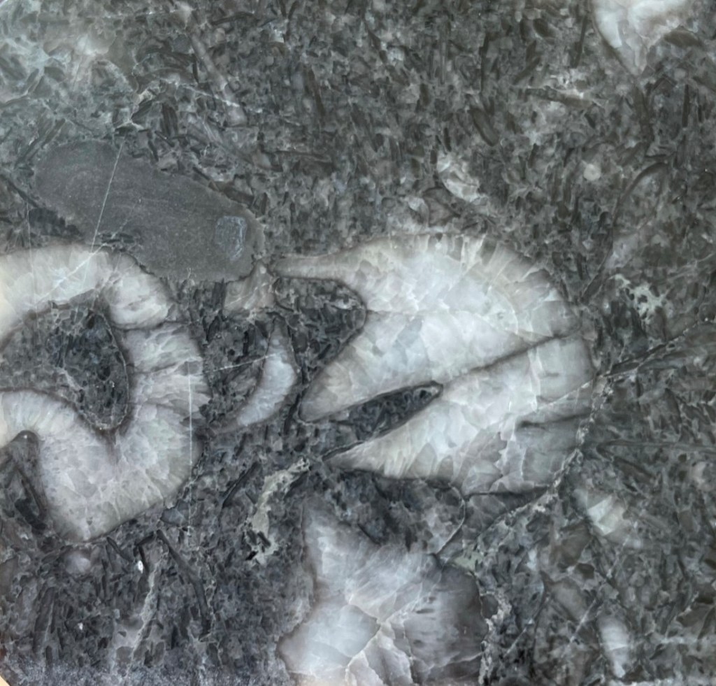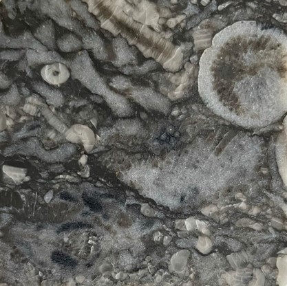 I Oslofeltet finnes det fossiler fra forskjellige geologiske tidsperioder, som Kambrium, Ordovicium, Silur, Devon, Karbon og Perm. Fra de tre eldste periodene finnes det hovedsakelig marine fossiler som muslinger, armføttinger, snegler, blekkspruter, koraller osv., mens fra de tre yngste periodene finnes hovedsakelige sedimenter avsatt i elver og innsjøer på land med fossiler av ulike typer planter (for det meste bregner og sneller). Som eksempel kan det nevnes at i dagens Vestfold og Telemark var et yrende sjøliv for 430 millioner år siden. Dette var i Silur, og liv i sjøen hadde klart å utnytte kalk til å lage beskyttelse rundt seg selv. Norge lå på den tiden ved ekvator. Området hadde store korallrev. Etter hvert som korallene, sjøliljene og andre arter døde, falt de ned på bunnen med sine kalkskall. Her ble det etter hvert betydelige mengder av kalk, som ble pakket til kalkstein etter hvert som millioner av år gikk. Men historien stopper ikke med det. Kontinentene drev videre og sprakk opp slik at flytende masser presses opp fra jordens indre. For rundt 300 millioner år siden ble en annen kjenning i dette området dannet, Larvikitten. Den varmet opp kalkbergarten i området ved kontakt-metamorfose. Generelt vil kalkrike bergarter som blir utsatt for sterk varme bli nesten flytende og omvandles til marmor. Så omvandlet som til marmor ble ikke kalkstein her ved Porsgrunn da temperaturen nok var litt lavere enn det som skal til for å smelte kalksteinen. Heldigvis får vi si, for i marmor finner man ikke fossiler. Og det er fossilene som gir bergarten her sitt spesielle og tiltalende utseende.