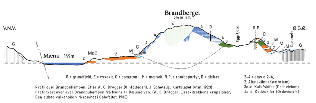 Et av flere områder i Oslo-feltet som vi fremdeles finner spor etter vulkanisme, er på Hadeland. Der står de tre vulkanpluggene Sølvsberget, Buhammaren og ikke minst Brandbukampen igjen som bevis på et helt annet landskapsbilde enn det vi er vant til i dagens Norge. Egentlig er det fem plugger som ligger på linje her på Hadeland, men helt i starten av kartleggingen var det de nevnte tre som var kjent. Etter hvert tilkom også Ballangrudkollen og Tingelstad. For dannelsen av Oslo-feltet snakker geologer om seks forskjellige stadier. Disse vulkanene oppsto i fjerde stadium, for rundt 280-265 millioner år siden. Men det er alltid spennende å se utviklingen på kunnskap og språk så på resten av denne siden kan de gamle mestre få «ordet» for å viser hva de fant ut.
