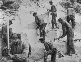 Kleberstein, eller kleberen fra Sel kommune er av meget god kvalitet. Her fra Vesleberget i Heidal i 1932 der man ser uttveiting av blokker med egne kleberhakker (spetto).