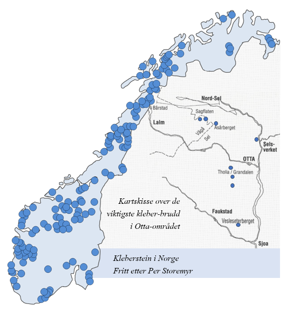 Kleberstein har vært, ved siden av brynestein og kvernstein, den viktigste bergarten i Norge i tidlige tider. Rundt om i landet ligger det over 150 forskjellige klebersteinsbrudd eller rester etter slike. Ofte står påbegynte kleber-kar ut i fjellsidene som tause vitner på en tidligere industri som nå dessverre har tatt slutt.