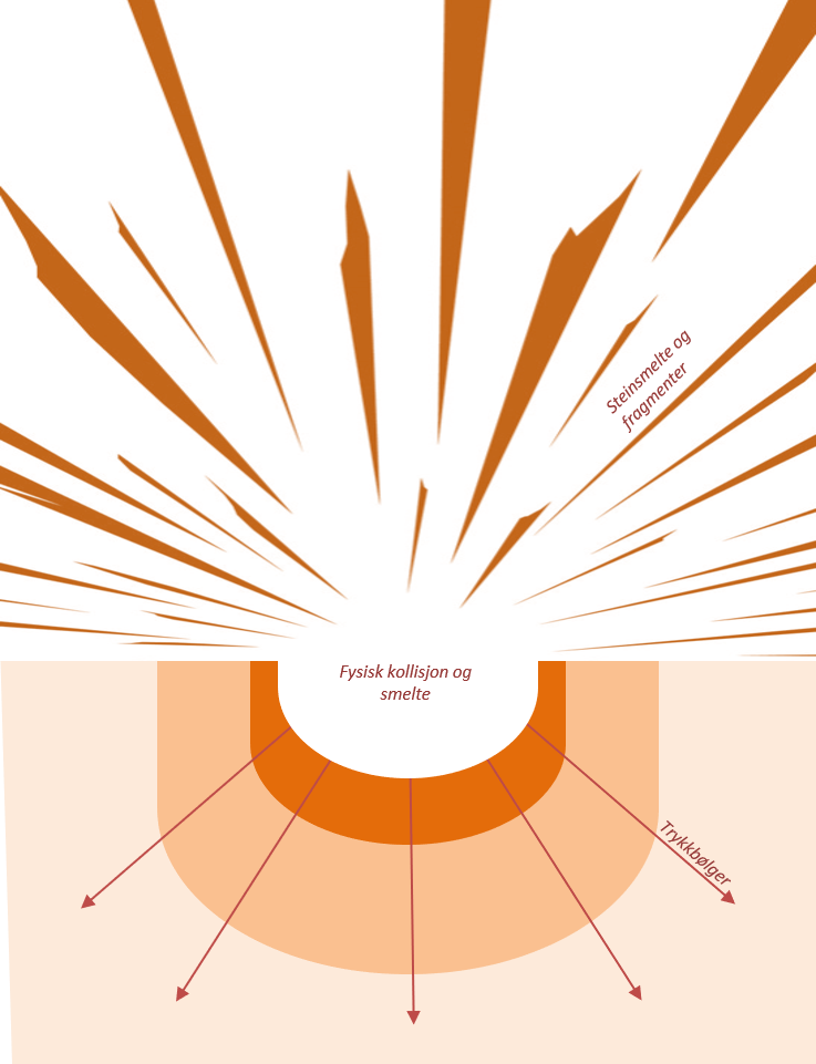 Når en stor meteor treffer Jorden dannes det naturlig nok ett krater dersom den treffer land. Kraften og trykket ved kollisjonen fordamper deler av meteoritten, så vel som bakken den treffer. Grunnen sprenges ut til ett krateret og bakken blir utsatt for en enorm sjokk/trykkbølge som påvirker grunnen rundt og under krateret. Varmen som utvikles i selve kollisjonen blir så høy at berggrunnen og stein smelter. Noe av denne “steinsmelten” flyter ut ved krateret, mens noe også slynges opp i luften i sammen med rester av meteoritten og lokale steinfragmenter.