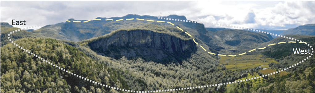Legger man godviljen til kan man fremdeles se konturene av et gammelt krater og høyden i sentrum, men det er ikke lenger en sirkelformet grop i bakken. Den østlige kraterveggen er dessuten fjernet av istidene, og skog dekker store deler av området. Det er altså ikke kraterformen, men de spesielle bergartene som forteller historien om hva som skjedde for 546 millioner år siden.